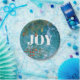 Las profundas olas azules del océano en el fondo con coníferas y bayas de Navidades enmarcando la palabra "JOY". Un hermoso diseño costero con temática navideña ideal para Navidades en las celebraciones de verano o Navidades costeros.