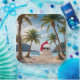Nevador de arena fina con gorro de Papá Noel en una playa con palmeras