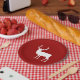 Elegantes Navidades rojos y blancos venados en Silhouette. Diseño sencillo y realista. El color de fondo se puede personalizar.