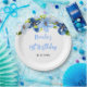 This beautiful and elegant plate features watercolor baby blue and navy blue flowers with foliage. The text combines handwritten script and serif fonts for a stylish and modern look. This is perfect for a spring or summer rustic birthday.