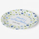 This beautiful and elegant plate features watercolor baby blue and navy blue flowers with foliage. The text combines handwritten script and serif fonts for a stylish and modern look. This is perfect for a spring or summer rustic birthday party.