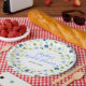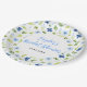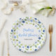 This beautiful and elegant plate features watercolor baby blue and navy blue flowers with foliage. The text combines handwritten script and serif fonts for a stylish and modern look. This is perfect for a spring or summer rustic bridal shower.