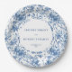 Elevate your reception décor with these navy roses French Toile de Jouy wedding paper plates. Featuring elegant blue roses in navy blue, royal blue, dusty blue, and deep blue tones, this floral design adds timeless charm to bridal showers, rehearsal dinners, and formal celebrations. Perfect for classic, romantic, or vintage-inspired themes, these stylish disposable plates combine beauty and convenience for a coordinated wedding tablescape.