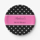 Plato De Papel Negro blanco, ducha de novias con punto de polka r