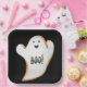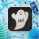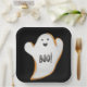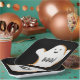 PLATO DE PAPEL NEGRO CON FANTASMA BLANCO Y NARANJA HALLOWEEN