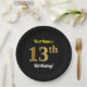 Plato De Papel Negro, Faux Gold 13 cumpleaños + Nombre personaliz