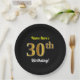Plato De Papel Negro, Faux Gold 30 cumpleaños + Nombre personaliz