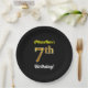 Plato De Papel Negro, Faux Gold 7Cumpleaños + Nombre Personalizad