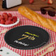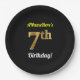 Este sencillo, personalizado diseño de placas de papel con temática de cumpleaños incluye un mensaje de personalizable como "¡UnameAquí es el séptimo cumpleaños!", donde se puede cambiar el nombre, y con el "séptimo" con un aspecto falso/imitación dorado. También tiene un fondo de color negro. Las placas de papel como estas podrían ser usadas en un fiesta que se celebra el séptimo cumpleaños de alguien. [~Z0000143]