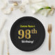 Plato De Papel Negro, Faux Gold 98 cumpleaños + Nombre personaliz