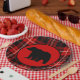 Fundas rojas y negras con un oso negro de diseño acogedor, de camarote.