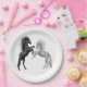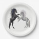 Plato De Papel Negro y un caballo blanco que pelean