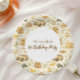 A soft and charming safari-themed design featuring gentle watercolor animals surrounded by delicate wildflowers and botanical greenery. Sweet lions, giraffes, elephants, and zebras create a whimsical storybook scene in warm neutral tones of beige, cream, and soft sage. The elegant arch layout and botanical details give this design a timeless and refined look, perfect for celebrating a little one’s special first birthday.
