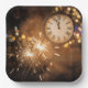 Party sparklers and a vintage clock indicate it's almost midnight for the New Year celebration