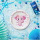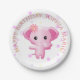 Plato De Papel Niña pequeña y rosa dulce elefante