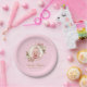 Plato De Papel Niña Rosa Foto de Bautizo Orquídeas Floral Geométr