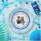 Niño y su perro es un niño placas de papel de Baby Shower. Confeti azul y verde.