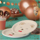 Esta adorable suite de cumpleaños de peluche incluye invitaciones, placas de papel y pegatinas. También hay una versión para niños en la tienda.