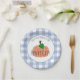 Este plato fiesta coincide con las invitaciones de primer cumpleaños de "Our Little Pumpkin". Este diseño tiene un borde de manto azul claro de búfalo y una adorable calabaza de gingham naranja y dice "nuestra calabaza pequeña es UNA". Personalizar con el nombre del bebé.
