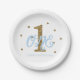 Plato De Papel Niños azules y dorados UN Fiesta de primer cumplea