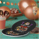 Trae risas a tu reunión de Halloween con estos divertidos platos de papel con la alegre cita, "No me hagas voltear mi bruja". Estos platos, adornados con caramelos, una escoba, una luna naranja y cráneos intrincadamente tejidos, le dan un toque de travesura a la mesa. ¡Prepárate para una fiesta encantadoramente divertida!