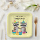 Plato De Papel Noche de cumpleaños raccoon lindo amarillo claro