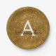 Plato De Papel Noche de oro y monograma shimmer cumpleaños
