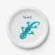 Plato De Papel Nombre de cumpleaños de Gecko de Lizard Azul Cute