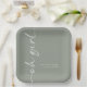 Plato De Papel Nombre de guión rotado Sage Oh Chica Baby Shower