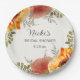Platos de papel personalizados para la fiesta de despedida de soltera elegantes, vintage, con flores de acuarela de color naranja quemada y coral y vegetación. Personalizados con el nombre de la futura novia y la fecha de su fiesta de despedida de soltera.