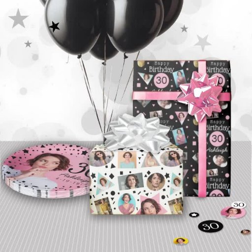 Pink Black White Confetti Photos 30th BirthdayDiseñado por Mindy Pierce