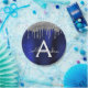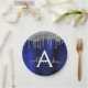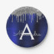 Plato De Papel Nombre de monograma con brillo de lentejuelas azul
