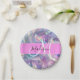 Platos de papel monograma iridiscente holográfico rosa, púrpura y aqua. Su nombre personalizado y monograma están escritos en una elegante letra manuscrita con fondo rosa. ¡Un regalo perfecto de cumpleaños o Navidad!