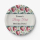 Plato De Papel Nombre del cumpleaños de la fresa verde y capricho