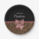 Estancia en la moda con estas placas de papel del estampado leopardo marrón elegante de la piel con una cinta marrón atractiva elegante atada en un arco elegante. Personalice este diseño moderno y con clase del estampado de animales añadiendo el nombre de la chica marchosa. Imagen impresa del plano, piel o cinta no real.