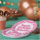 Celebra tu cumpleaños con estas divertidas fucsia y placas de papel con rayas blancas. El diseño geométrico de moda es una mezcla de fucsia y franjas blancas y un confetti. Hay un círculo blanco en el centro para el texto y una plantilla de texto para que pueda cambiarlo fácilmente a sus propias palabras, nombre o evento. Este diseño es adecuado para todas las ocasiones, incluyendo fiestas de cumpleaños, duchas, aniversarios, graduaciones y más. El diseño es también para todas las edades y todos los géneros; sólo hay que cambiar el texto para que coincida con el evento.