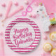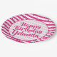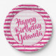 Plato De Papel Nombre Feliz Cumpleaños Fuchsia Patrón de franjas