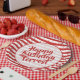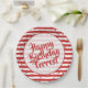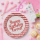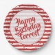 Celebra tu cumpleaños con estos divertidos platos de papel de rayas rojas y blancas. El diseño geométrico de moda es un patrón de rayas simples rojas y blancas con confeti. Hay un círculo blanco en el centro para el texto y una plantilla de texto para que pueda cambiarlo fácilmente a sus propias palabras, nombre o evento. Este diseño es adecuado para todas las ocasiones, incluyendo fiestas de cumpleaños, duchas, aniversarios, graduaciones, y más; sólo cambia el texto para que coincida con el evento.