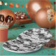 Haga un golpe que da a una fiesta de cumpleaños a un amante del camuflaje con estos la diversión y las placas de papel elegantes del fiesta personalizadas con un diseño conocido y gris y negro del camo. El color gris es especialmente muy de moda. Las palabras "feliz cumpleaños" son adaptables y se pueden cambiar a otras palabras u ocasiones. Este camuflaje es arte original en las sombras de los colores grises (gris), del negro, del carbón de leña y del estaño. Un óvalo gris claro en una tira gris proporciona un área para personalizar con palabras y o nombre. Esta diversión y diseño de moda del camo está por el artista y el diseñador Phyllis Dobbs de la tela y está disponibles en otros colores del camo en los diversos productos para su disfrute o para los grandes regalos. ¡Diviértase con camuflaje! Completamente adaptable para la personalización.