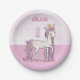 Plato De Papel Nombre personalizado 1er cumpleaños Caballo rosa c