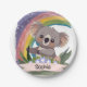 Plato De Papel Nombre personalizado del bebé de Koala Arcoiris