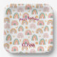 Plato De Papel Nombre personalizado del patrón arcoiris del Boho