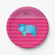 Plato De Papel Nombre personalizado hipopótamo azul chevrs rosado