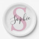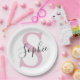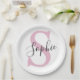 Plato De Papel Nombre personalizado moderno Monograma rosa