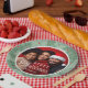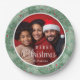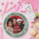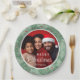 Las ramas de pino de Navidad moderno y las placas de papel personalizado de follaje de invierno le dan un toque festivo a todas sus reuniones de vacaciones. Personalizar fácilmente este plato con el nombre de su familia y la foto.