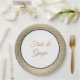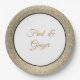 Placa de papel fiesta mostrada en una bonita impresión purpurina dorada fino alrededor de la llanta y el centro blanco. Sus nombres personalizados en un guión sofisticado en el centro. Se muestra en tamaño de 9". Vendido en paquete de ocho. Personalizar este artículo o compra tal cual.
