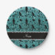 Plato De Papel Nombre turquesa purpurina campo hockey corazones a