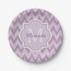 Plato De Papel Nombre y monograma púrpuras de moda del zigzag de