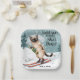 Novia Pegatina del partido de la bachillerato de esquí en placas de papel en pendiente