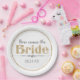 Estos platos glamorosos de fiesta tienen un tema de soltera y de novias. La frase "Aquí viene la novia" se imprime en el centro, con la letra "Novia" impresa en un purpurina dorado. Debajo de ella se imprimió una lujosa banda de diamantes. Una fecha de boda de ejemplo se imprime en la parte inferior que puede personalizar para incluir su propia fecha u otro texto de personalizado.